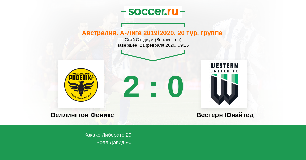 Протокол матча Веллингтон Феникс против Вестерн Юнайтед
