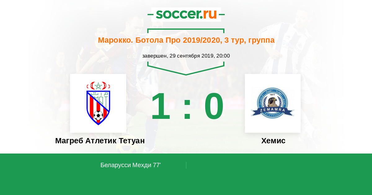 Протокол матча Магреб Атлетик Тетуан против Хемис