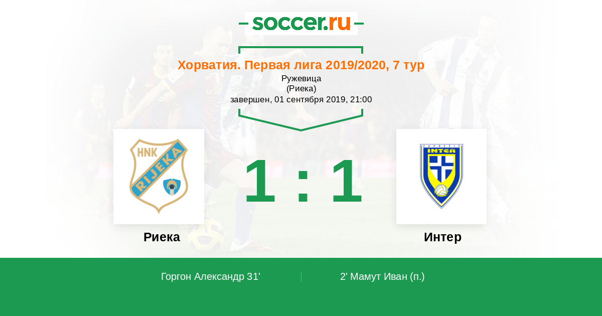 Протокол матча Риека против Интер