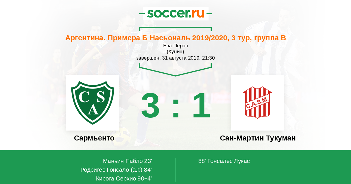 Протокол матча Сармьенто против Сан-Мартин Тукуман