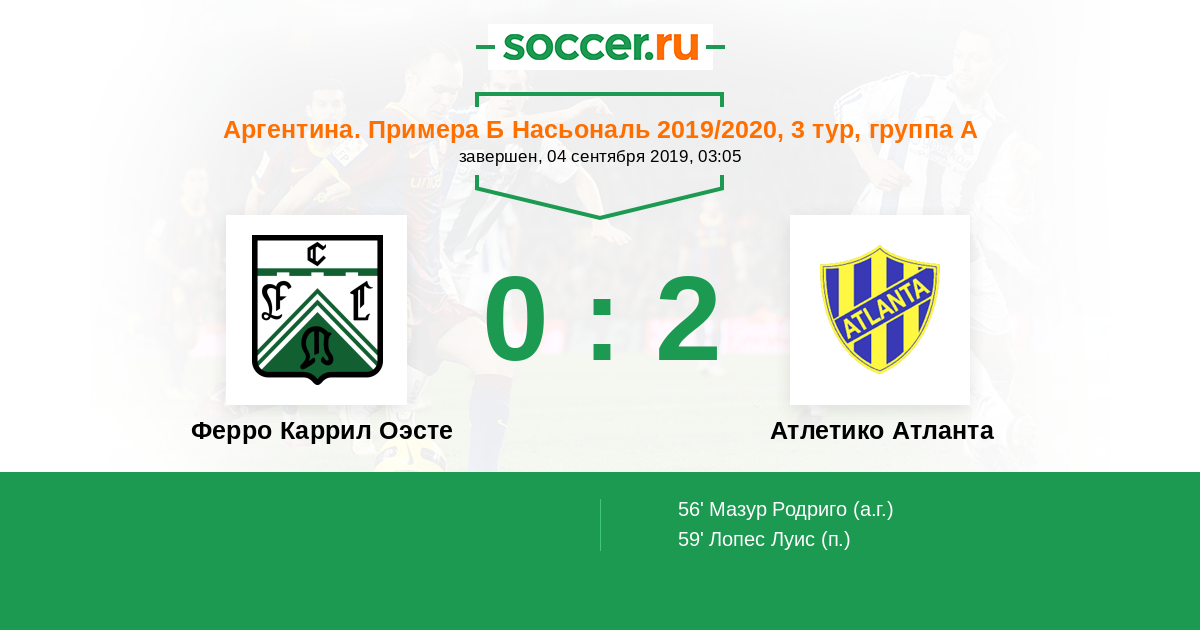 Протокол матча Ферро Каррил Оэсте против Атлетико Атланта