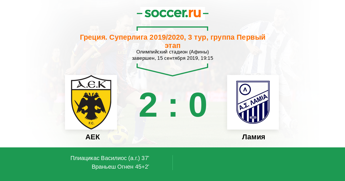 Протокол матча АЕК против Ламия