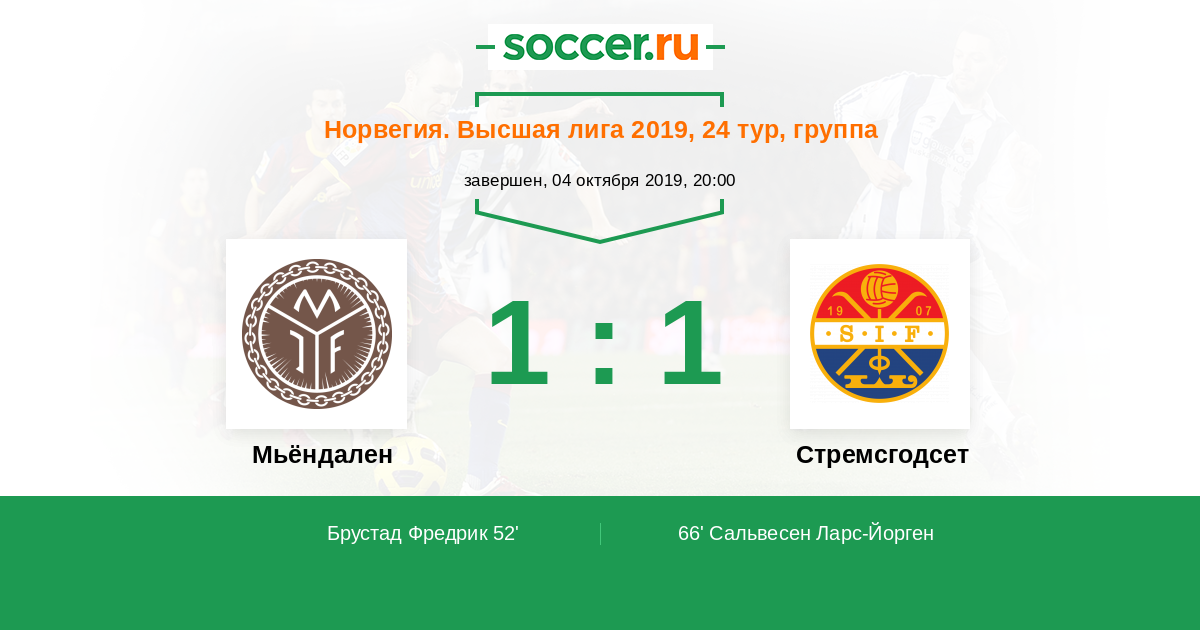 66' (1:1) Сальвесен Ларс-Йорген (88) (Менди Проспер (22))