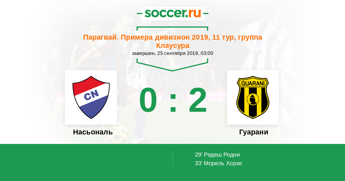 33' (0:2) Морель Хорхе (8) (Акино Клаудио Эсекьель (19))