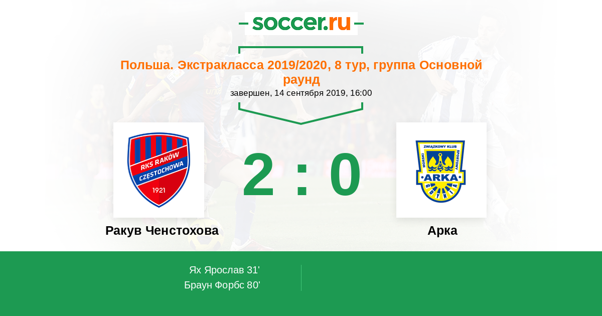 Протокол матча Ракув Ченстохова против Арка