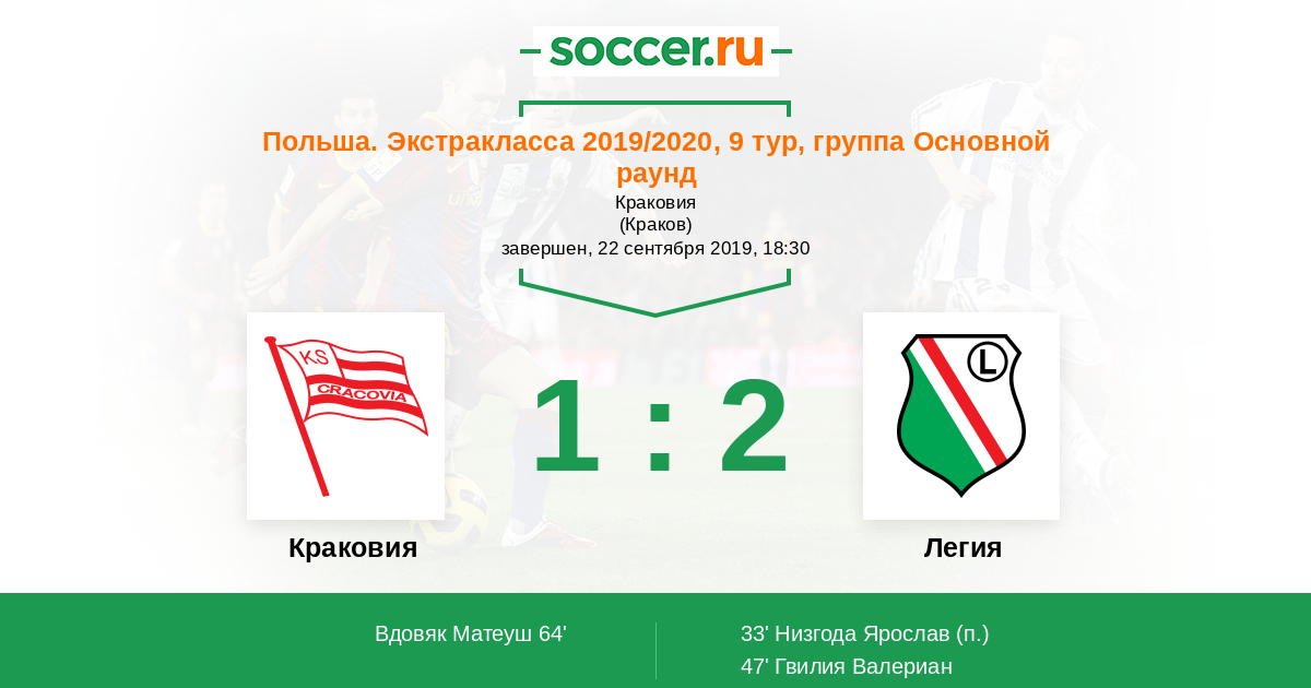 Протокол матча Краковия против Легия
