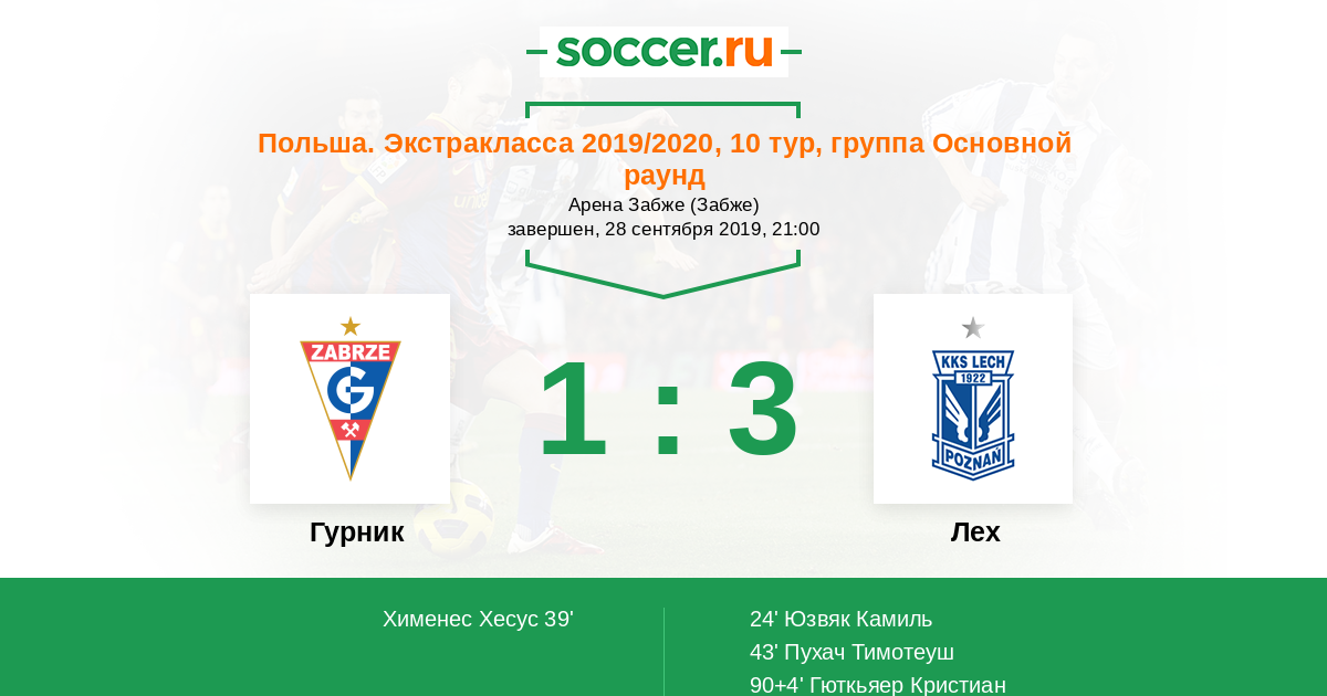 Протокол матча Гурник против Лех