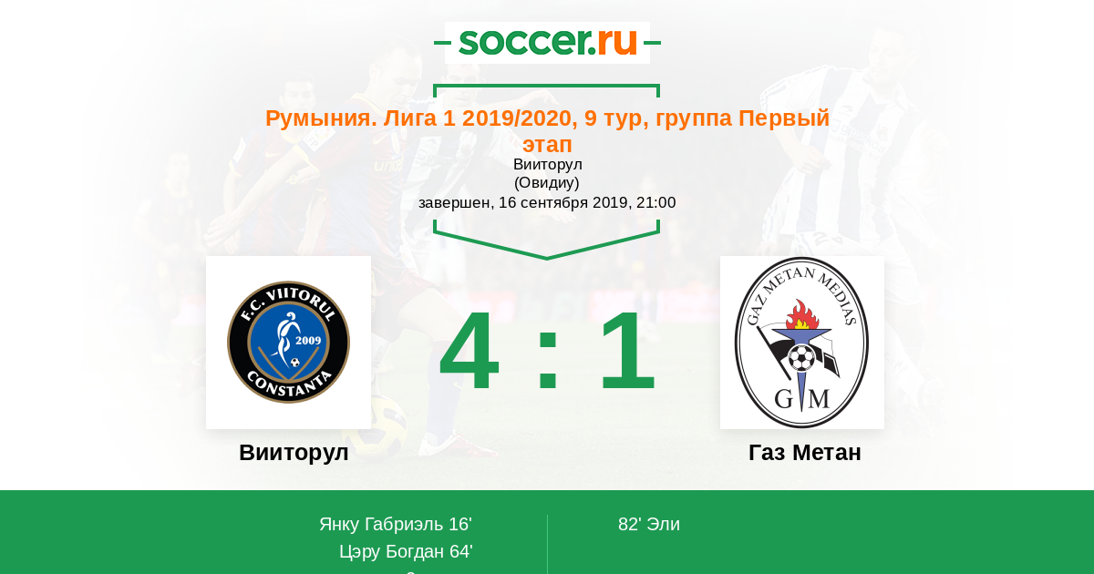 16' (1:0) Янку Габриэль (9) (Бобок Раду (2))
