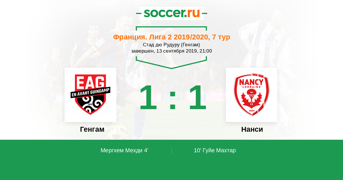 Протокол матча Генгам против Нанси
