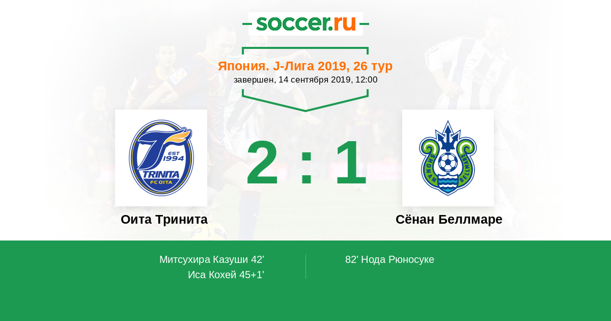 Протокол матча Оита Тринита против Сёнан Беллмаре