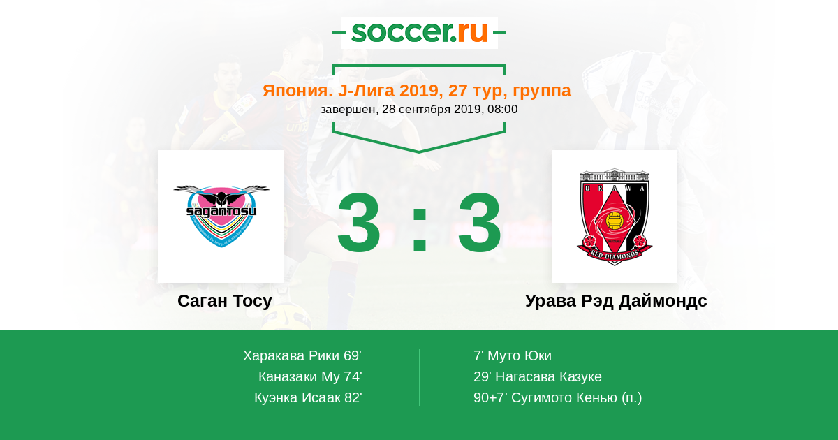 Протокол матча Саган Тосу против Урава Рэд Даймондс