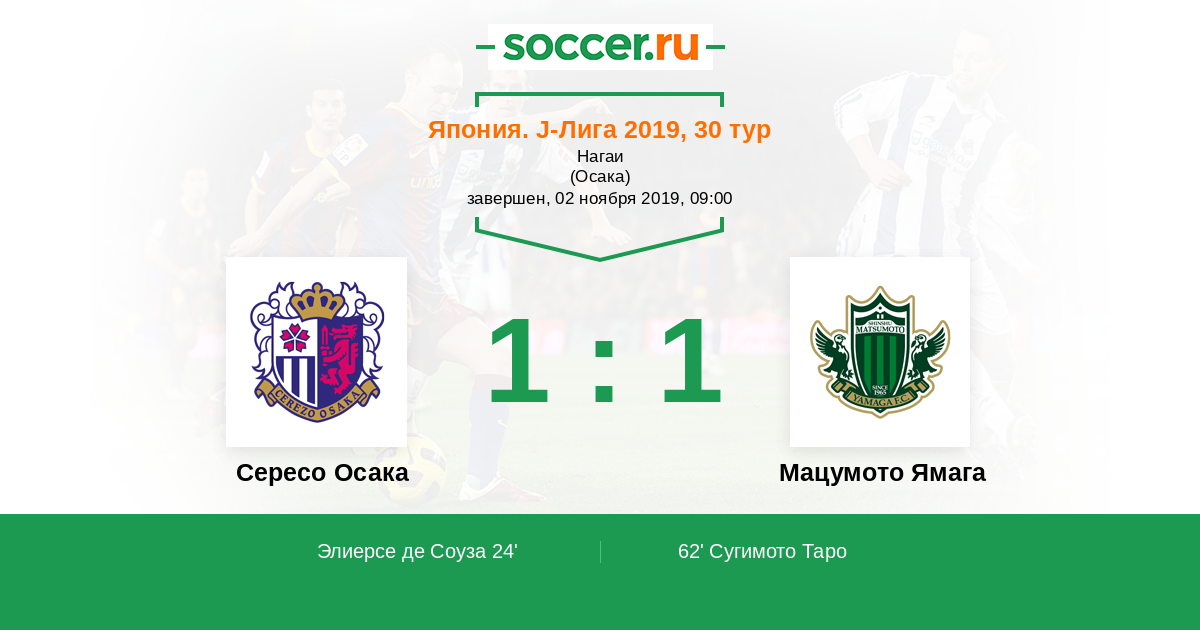 Протокол матча Сересо Осака против Мацумото Ямага