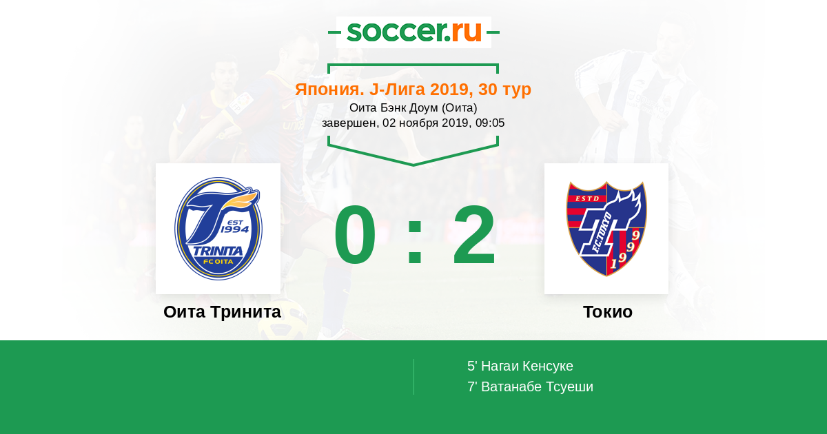 Протокол матча Оита Тринита против Токио