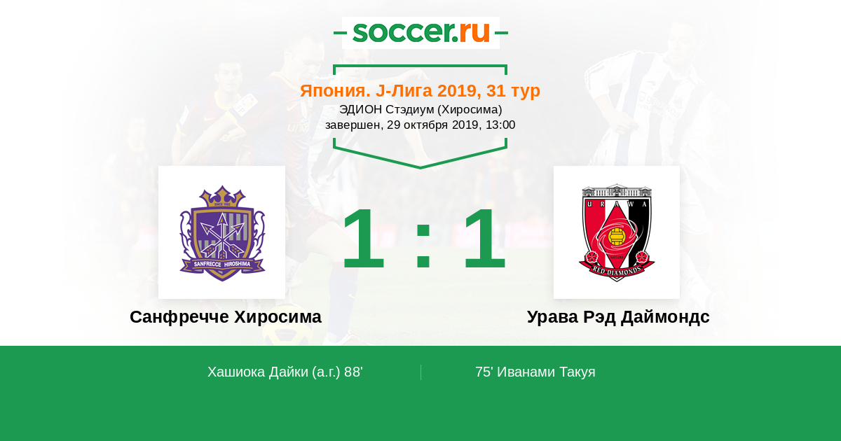 Протокол матча Санфречче Хиросима против Урава Рэд Даймондс