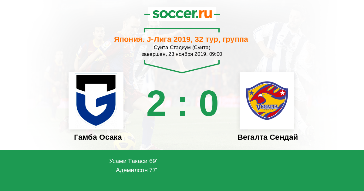 Протокол матча Гамба Осака против Вегалта Сендай