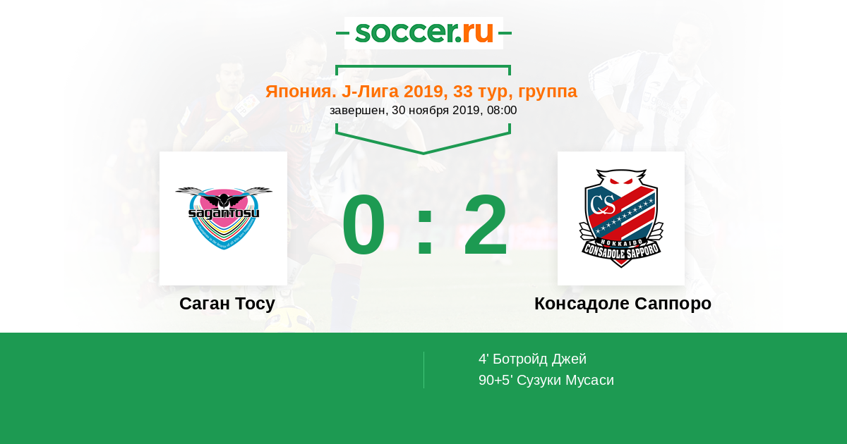 Протокол матча Саган Тосу против Консадоле Саппоро