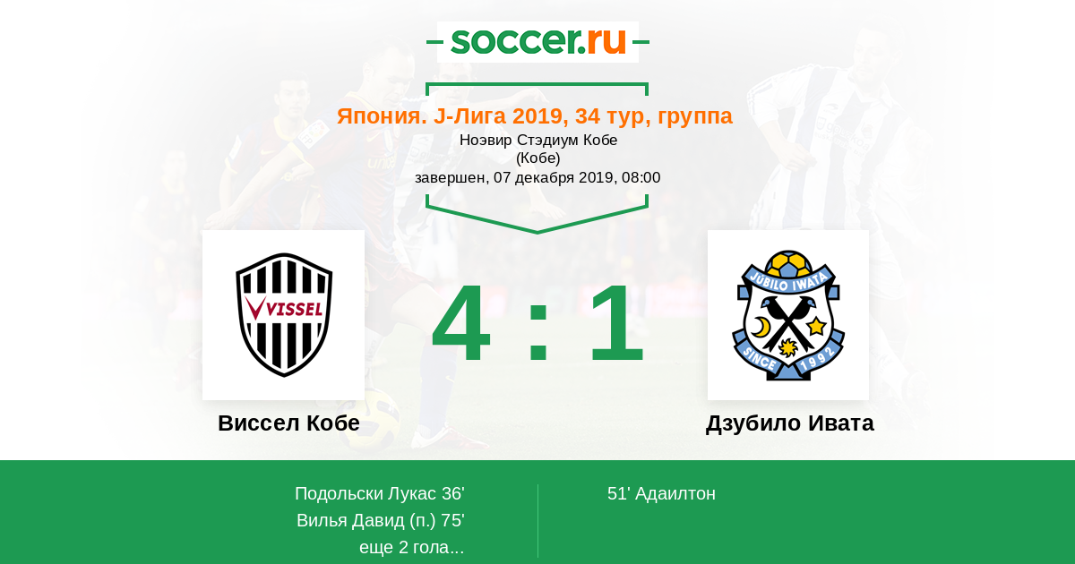 Протокол матча Виссел Кобе против Дзубило Ивата