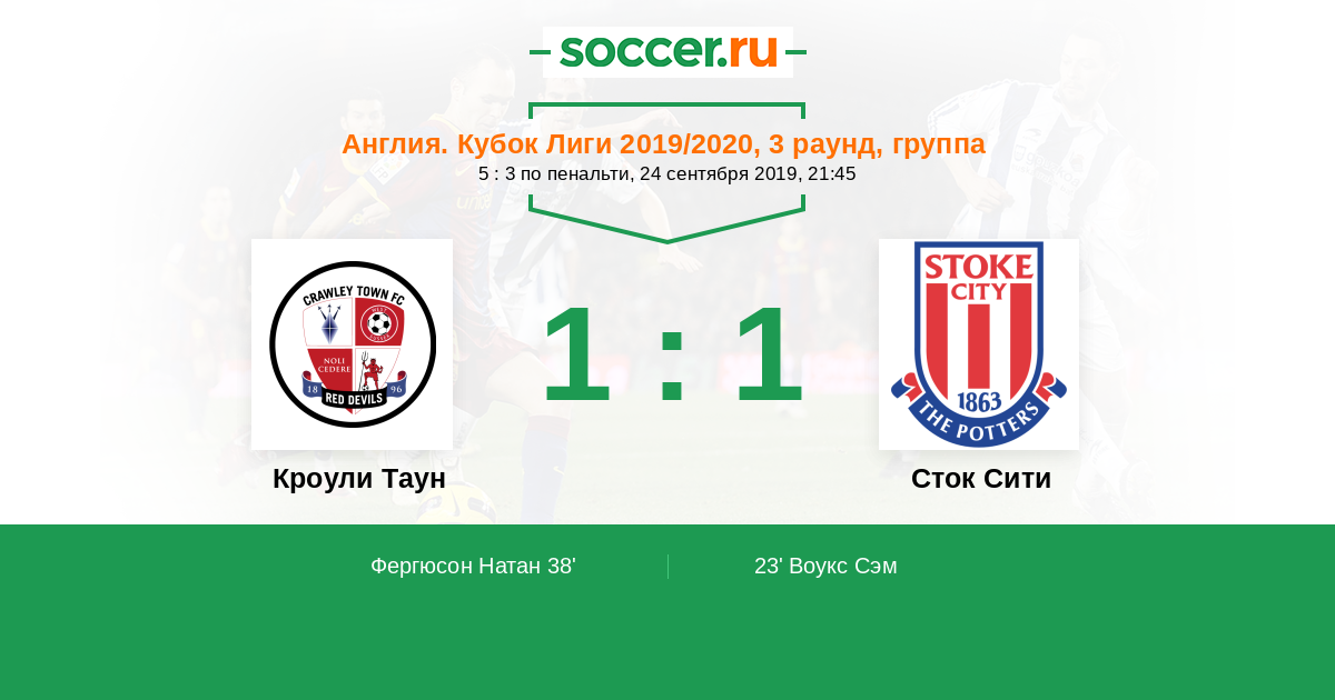 Протокол матча Кроули Таун против Сток Сити