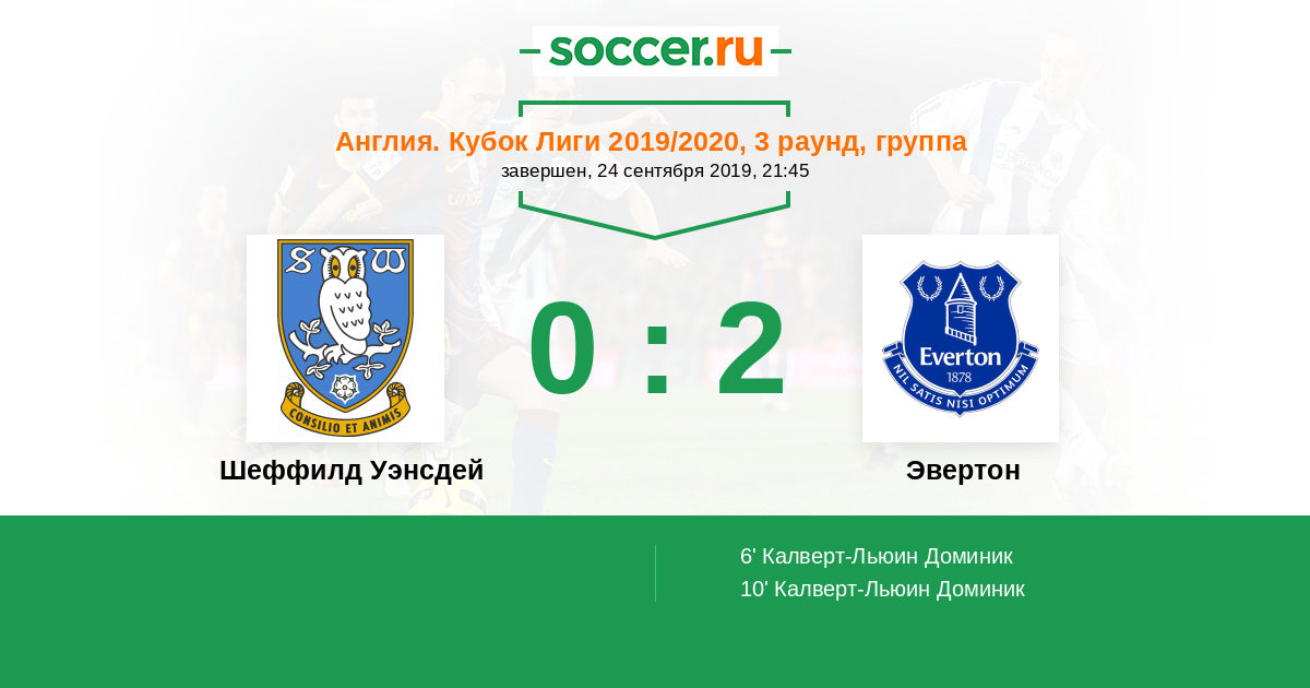 Протокол матча Шеффилд Уэнсдей против Эвертон