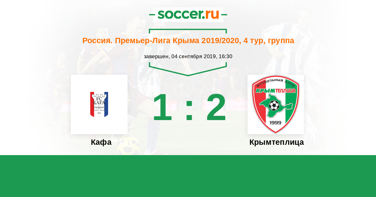 Россия. Премьер-Лига Крыма 10.09.2017 Крымтеплица Логотип футбольный клуб Крымтеплица (Молодежное) 2:1 Логотип футбольный клуб Кафа (Феодосия) Кафа