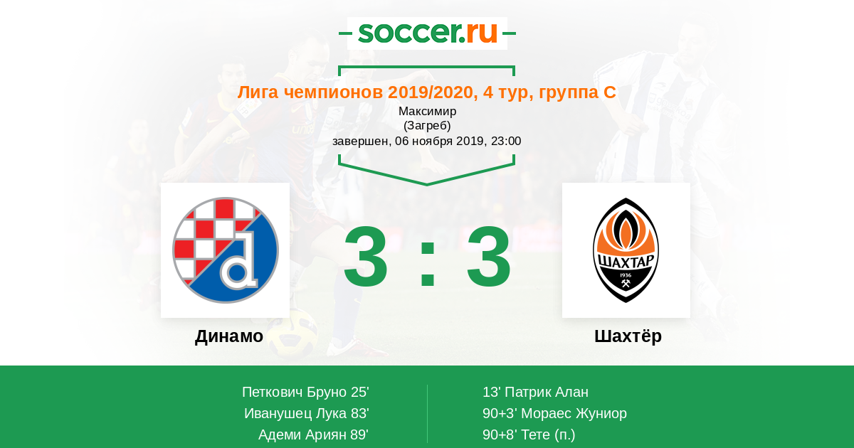 Протокол матча Динамо против Шахтёр