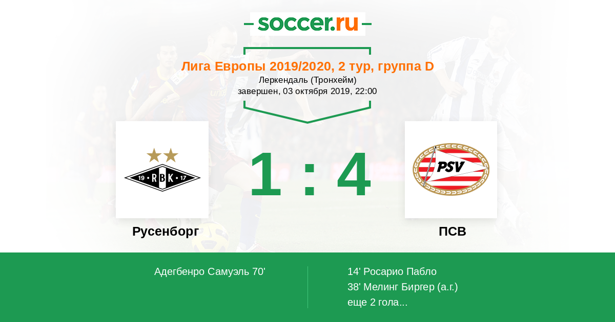 Протокол матча Русенборг против ПСВ
