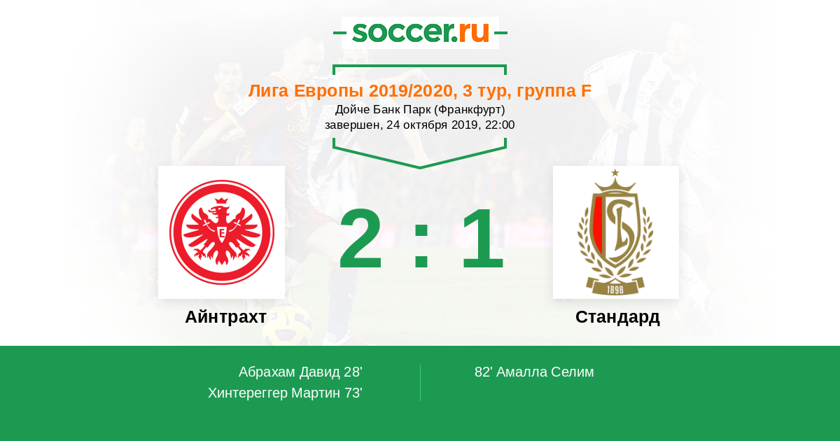 Протокол матча Айнтрахт против Стандард