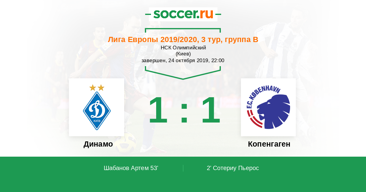 Протокол матча Динамо против Копенгаген