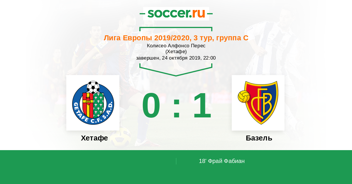 18' (0:1) Фрай Фабиан (20) (Петретта Рауль (28))