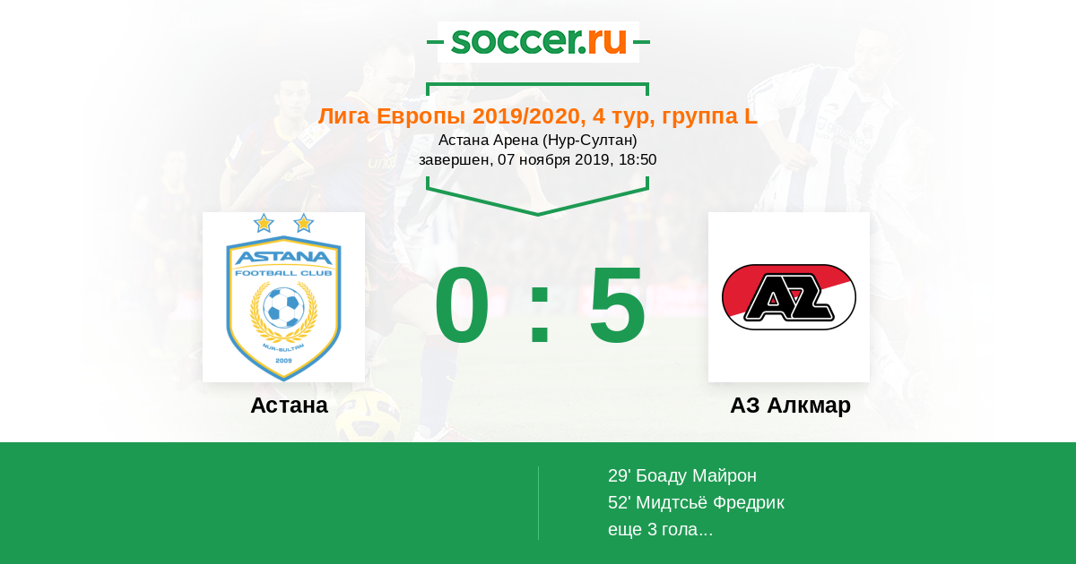 Протокол матча Астана против АЗ Алкмар