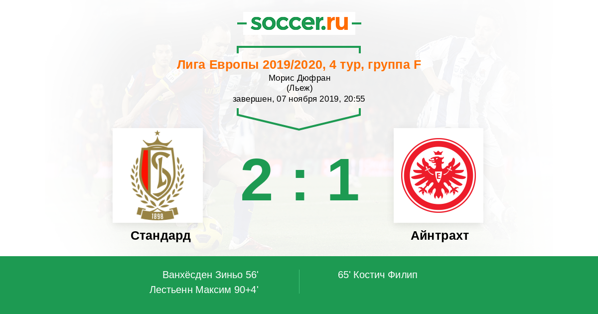 Протокол матча Стандард против Айнтрахт