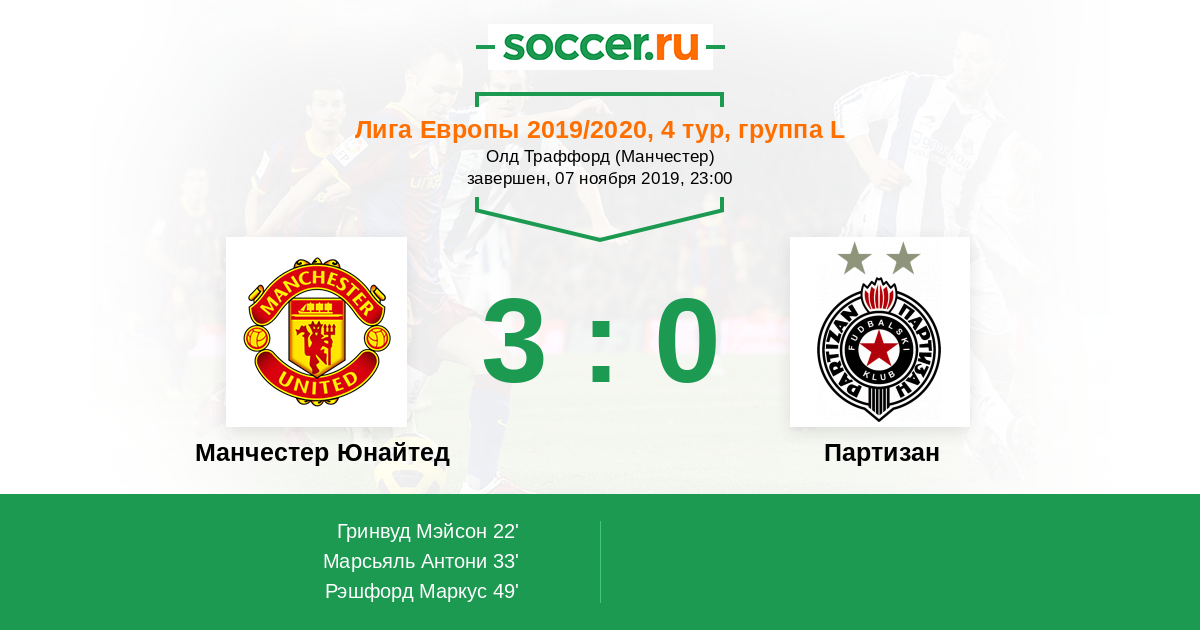 Протокол матча Манчестер Юнайтед против Партизан