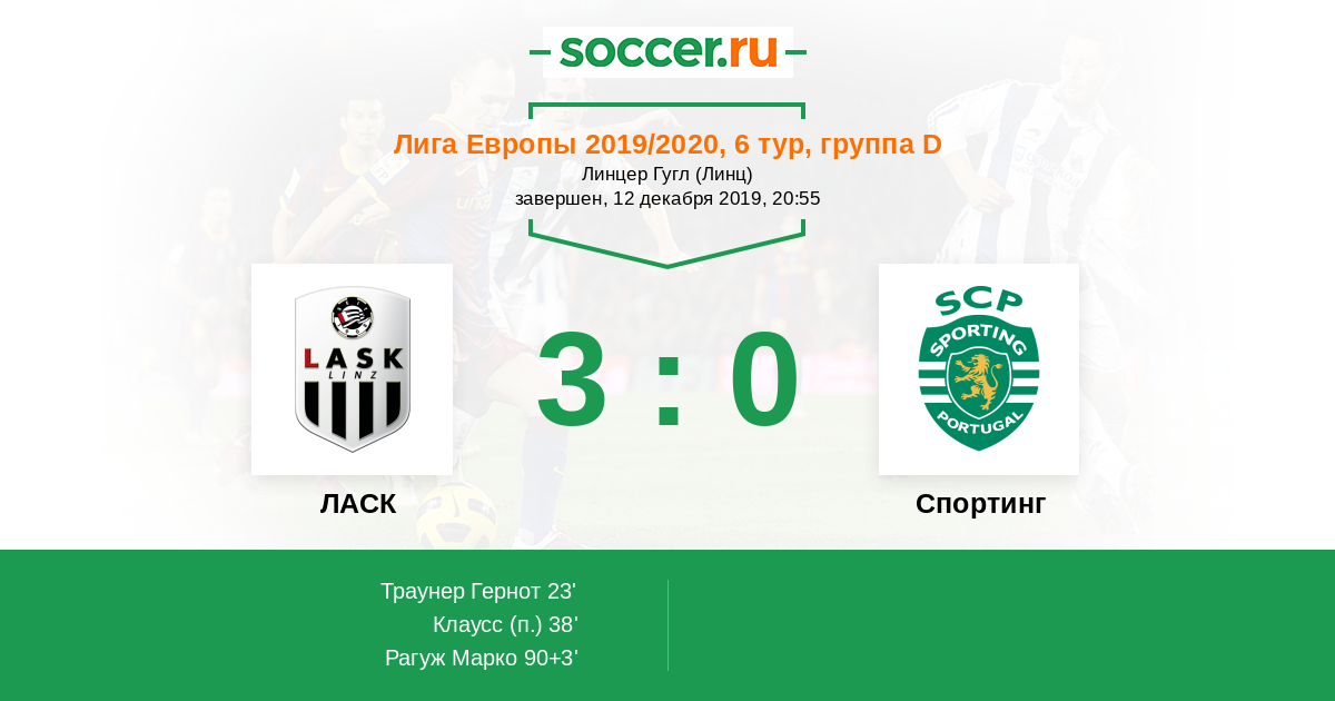 Протокол матча ЛАСК против Спортинг