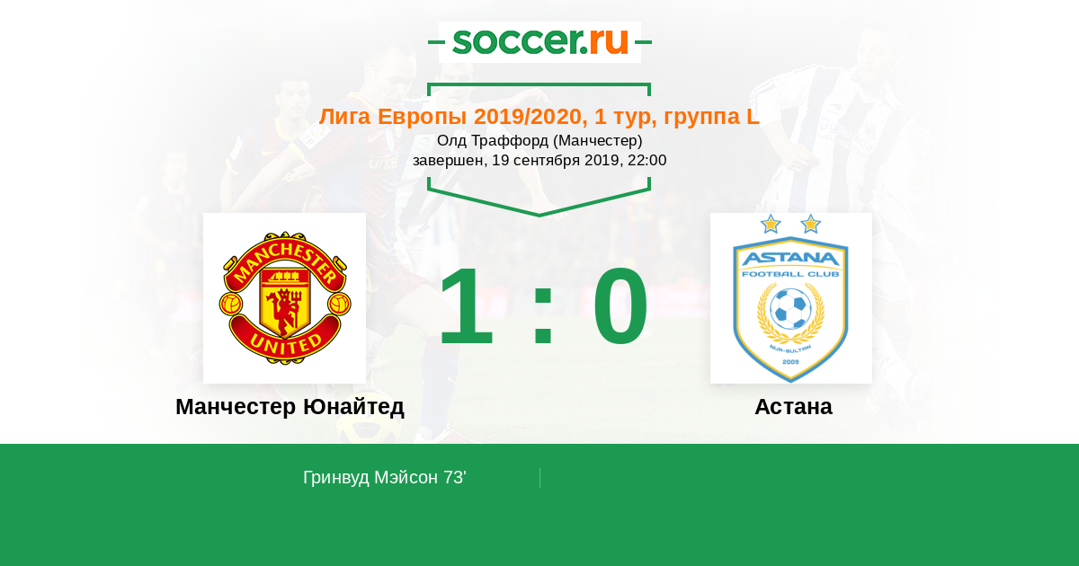 Протокол матча Манчестер Юнайтед против Астана