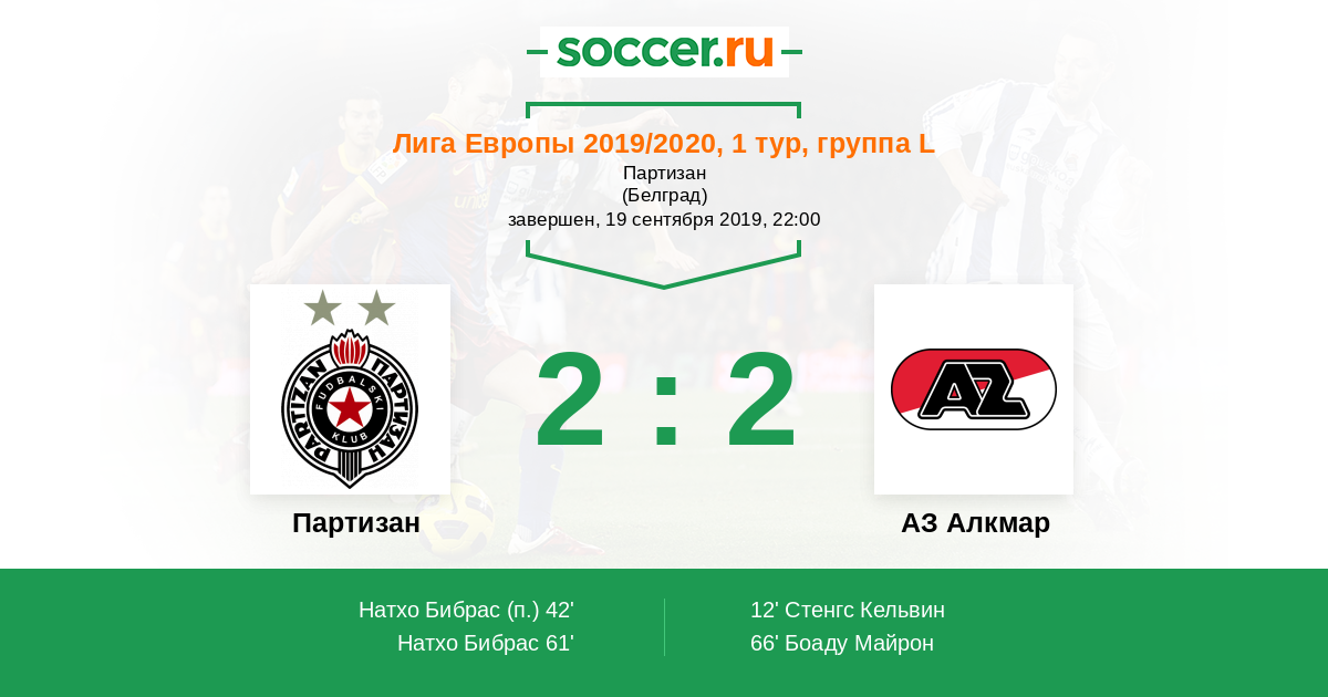 Протокол матча Партизан против АЗ Алкмар