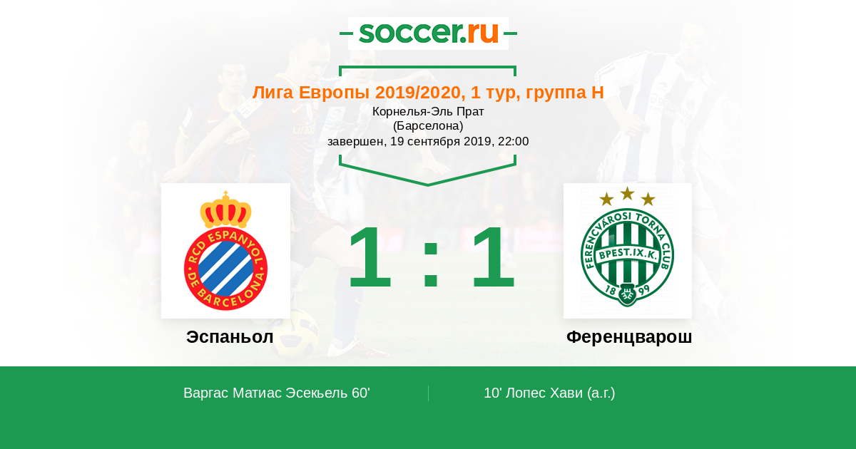 Протокол матча Эспаньол против Ференцварош