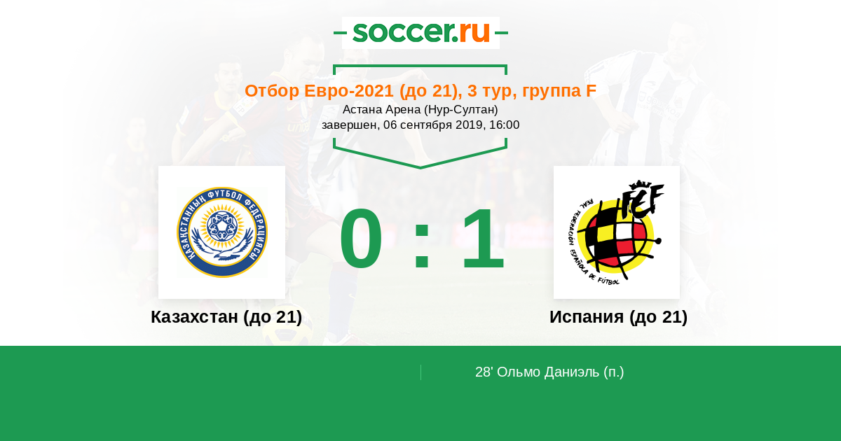 Протокол матча Казахстан (до 21) против Испания (до 21)