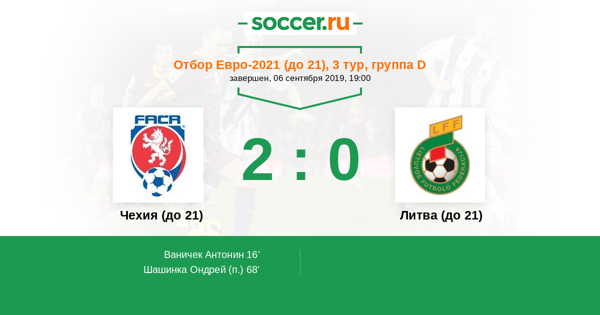 Протокол матча Чехия (до 21) против Литва (до 21)