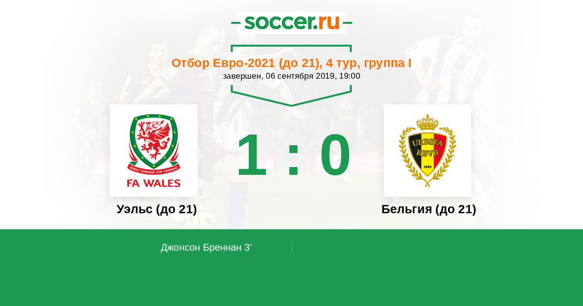 Протокол матча Уэльс (до 21) против Бельгия (до 21)