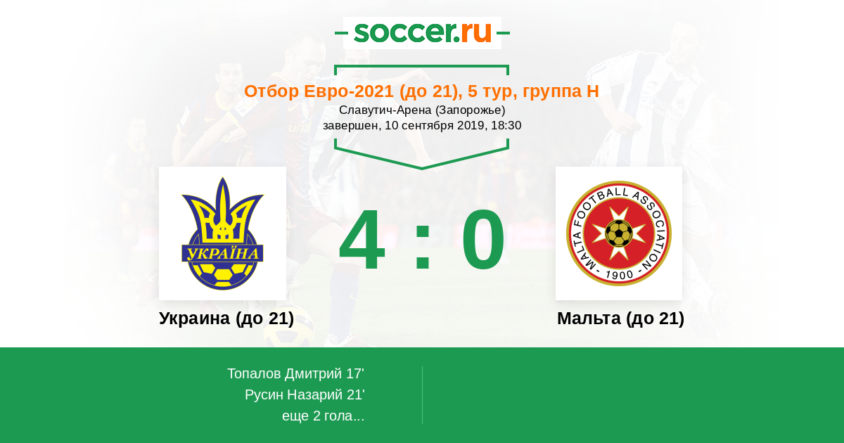 Протокол матча Украина (до 21) против Мальта (до 21)