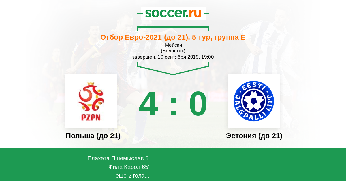 Протокол матча Польша (до 21) против Эстония (до 21)