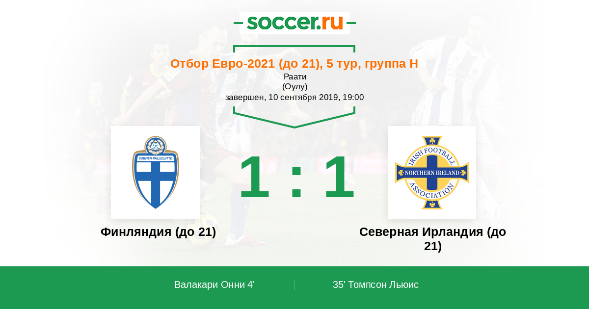 Протокол матча Финляндия (до 21) против Северная Ирландия (до 21)