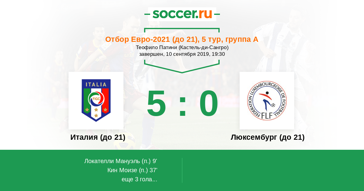 Протокол матча Италия (до 21) против Люксембург (до 21)