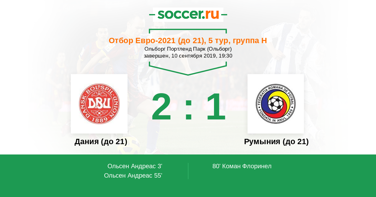 Протокол матча Дания (до 21) против Румыния (до 21)
