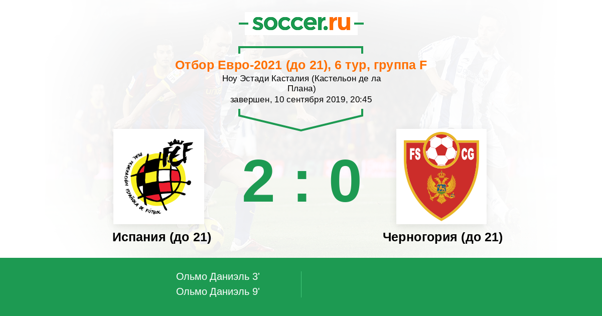 Протокол матча Испания (до 21) против Черногория (до 21)