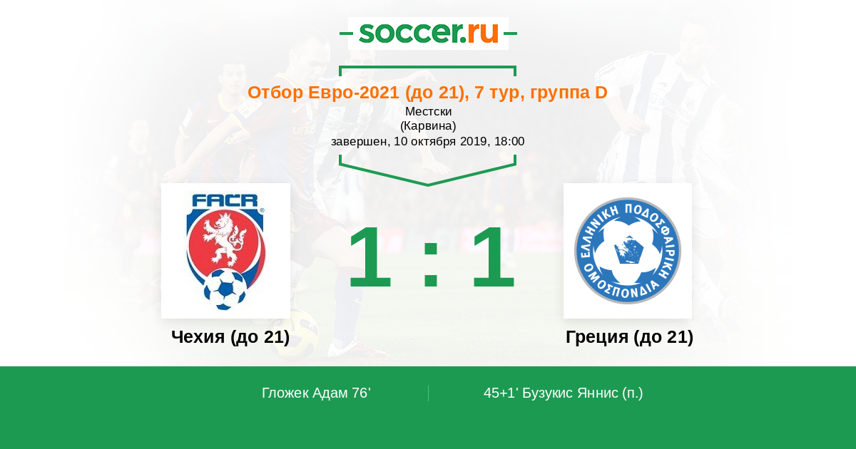 Протокол матча Чехия (до 21) против Греция (до 21)