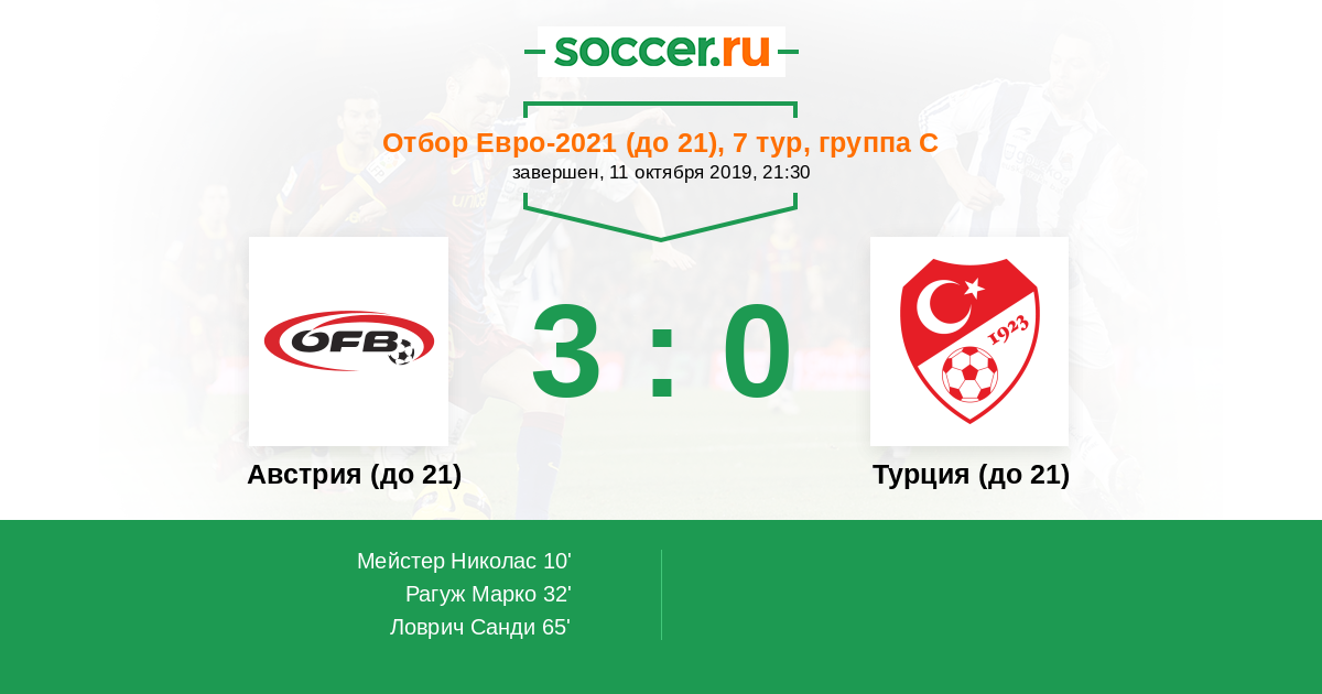 Протокол матча Австрия (до 21) против Турция (до 21)