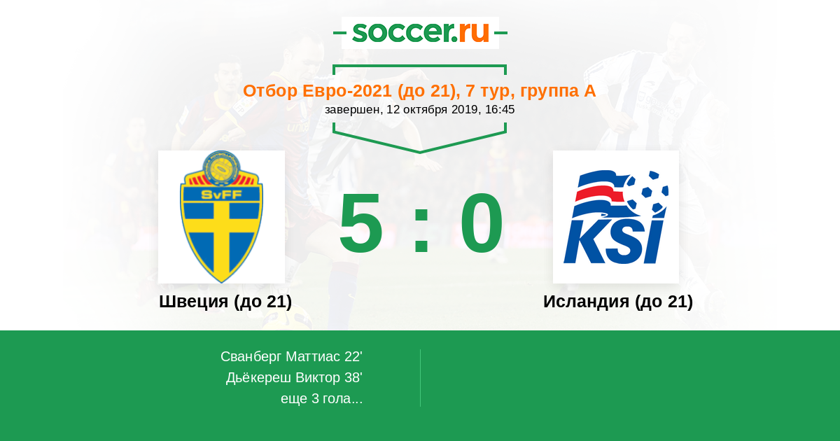 Протокол матча Швеция (до 21) против Исландия (до 21)