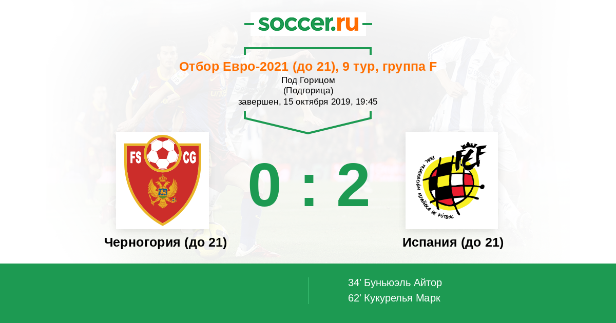 Протокол матча Черногория (до 21) против Испания (до 21)