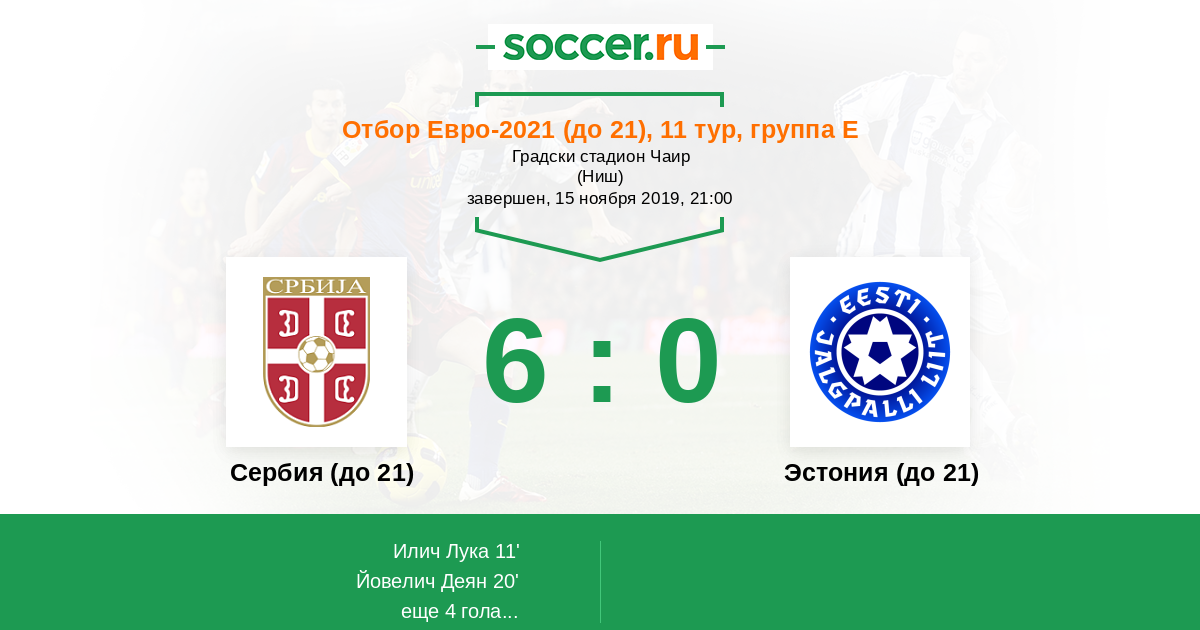 Протокол матча Сербия (до 21) против Эстония (до 21)